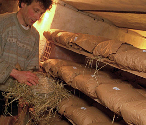 Selon cette ancienne technique de séchage, le foin, sec au départ, absorbe l’humidité qui se dégage du fromage.