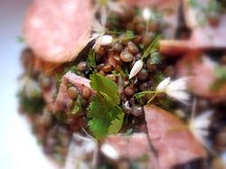 * Pour les accompagner, des galettes de céréales : Galette de blé noir et des légumes "d'époque", Fèves ; Fèves à la sarriette - Fèves à l'étouffée - Fèves en salade aux gésiers confits et pois-chiches, chou vert et herbes (salades), carottes ; Carottes Vichy, raves et lentilles ; Salade de lentilles Lyonnaises - Assiette du terroir lentilles vinaigrettes