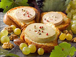 * Arrivait alors après la viande, le moment du foie gras, servi froid, en tranches ou en médaillons, accompagné de ses toasts (on peut choisir, aujourd'hui, de servir le foie gras en salade, ce qui est une façon élégante de sauter une étape.