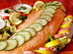 * On entamait les « choses sérieuses » avec le poisson, la plupart du temps une grosse pièce, saumon, lotte ou turbot, et servi froid (avec mayonnaise ou sauce tartare ) ou chaud. Beaucoup plus rarement, une recette élaborée mêlait poisson et coquillages.