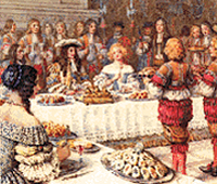 Seul point commun alimentaire entre les deux époques, le goût du festin théâtral . Sinon, tout les oppose : la cuisine du Moyen Age est simple, peu grasse, et épicée, celle du Grand - Siècle compliquée, riche en beurre et en crème, et sans épices… La comparaison de traitement sur des plats similaires ne peut qu’être amusante et instructive.