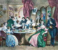 A condition d’avoir averti ses invités à l’avance, toutes les options sont possibles : du signe discret (une ceinture, un accessoire) au « vrai « déguisement, en passant par le costume approximatif « dans le style », ou par le « dîner de têtes » illustrant coiffures et couvre-chefs.