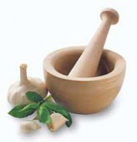 Aïoli dans un mortier en marbre ou une jatte de porcelaine.