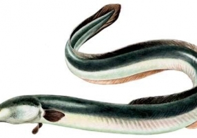En forme de serpent, ce poisson présente un corps long et fin, sans écailles.