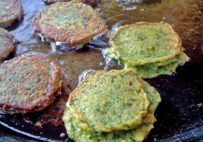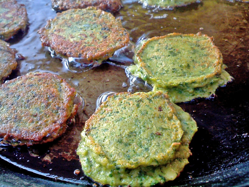 - Etaler les pâtons dans l’huile bien chaude, laisser dorer.