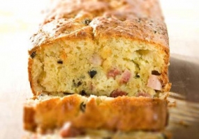 - Dans un saladier, mélanger énergiquement la farine, la levure, les œufs, le beurre fondu et le lait. Détailler le jambon en petits dés.
