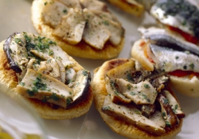 - Poser dessus quelques lamelles de champignons.