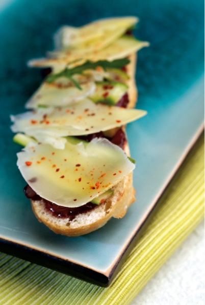 - Disposez sur chaque tartine, une couche de chutney de fraises.