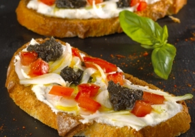 - Tartinez les tranches de pain (côté non grillé) de ricotta aillée.
