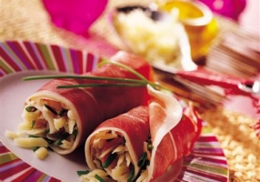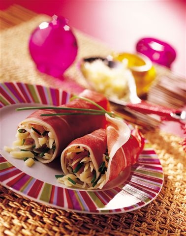 - Sur du film alimentaire, étaler les tranches de jambon côte à côte.