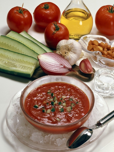 Si le gazpacho est trop épais, ajouter quelques glaçons au moment de servir.