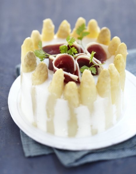 - Chemisez une charlotte en inox avec les têtes d'asperges.