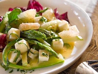 - Dans un récipient, mettez le jus de pamplemousse, l'huile d'olive.