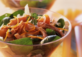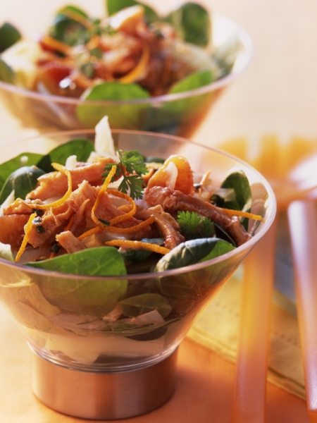 . Dans un bol, fouetter tous les éléments de la vinaigrette et le jus d'orange.