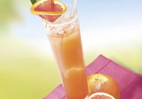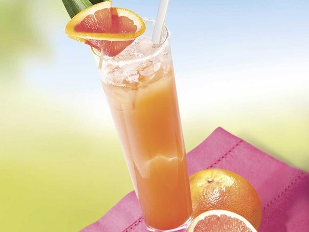 - Décorer les verres avec un morceau de melon et une tranche de pamplemousse.