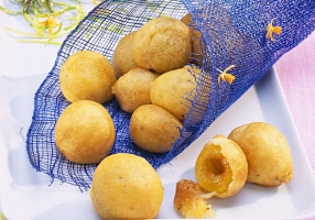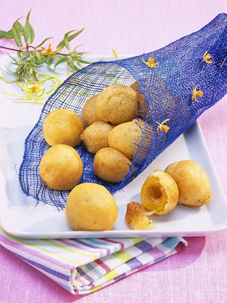 - Plonger les mirabelles une à une dans la pâte, puis dans l'huile chaude, par fournées de 10 fruits environ. Retirer les piques en bois.