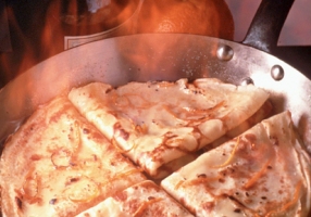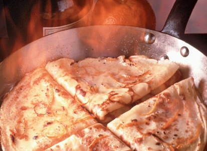 - Au moment de servir, choisir une poêle pouvant être présentée à table. Mélanger le beurre mou avec le zeste d'orange, puis faire fondre ce beurre parfumé dans la poêle.