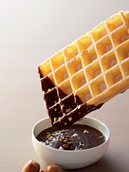 - Recouvrir les gaufres de ganache au chocolat tiédie et déguster aussitôt saupoudrées de sucre glace.