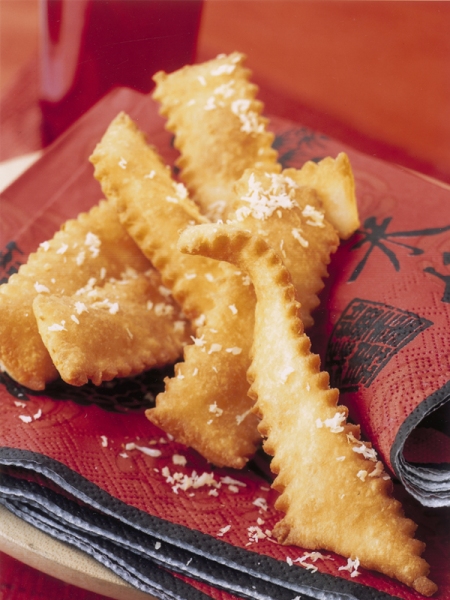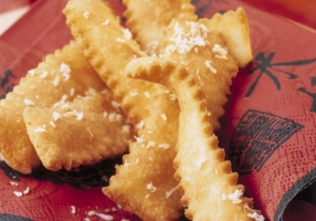 Pour servir, disposer les merveilles sur un grand plat et les saupoudrer de sucre glace.