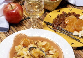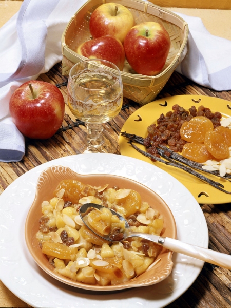 - Ajouter les abricots coupés, les raisins et la vanille.