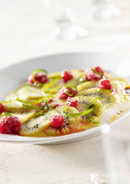 - Parsemer de fruits rouges et de zestes de citrons verts.