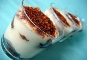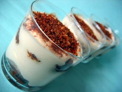 - Recouvrir de 2 cuillères à soupe de crème au mascarpone.