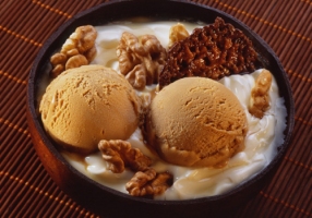 - À l'aide d'une cuillère à glace, former des boules de glace caramel.