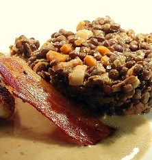 - Ajouter la crème fraîche au jus de cuisson et aux lentilles prélevées.