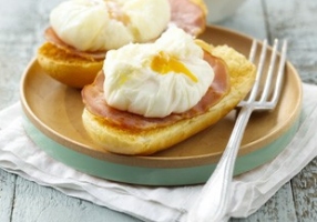- Poser un œuf sur chaque tranche de pain au dessus de la tranche de bacon.