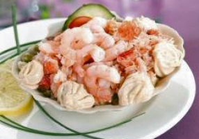 - Répartissez la chair du homard par-dessus (à défaut ce cocktail peut se faire également avec des crevettes).