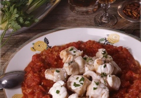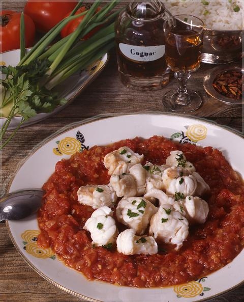 - Étendez la sauce sur un plat chaud (elle doit être assez épaisse et bien relevée), placez les morceaux de lotte au centre et semez un peu de persil sur ceux-ci.