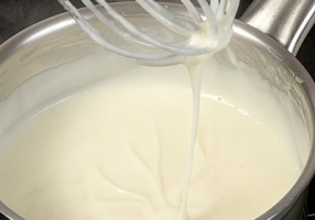 1ère méthode : laisser refroidir le roux blanc avant de verser progressivement le lait chaud.