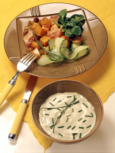 Pour accompagner : cette sauce au bleu est excellente avec un potiron en cubes cuit au four, parsemé de ciboule.