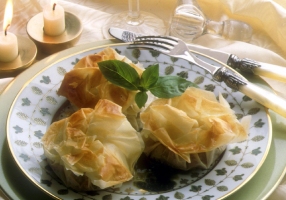 - Déposer les miettes de gigot au centre de chaque feuille, les refermer en forme d'aumônières et les faire dorer quelques minutes sous le gril.