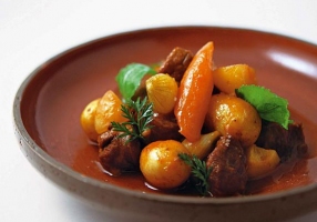 Portez votre choix vers une alliance sage : choisissez un vin blanc sec, ample et fruité d’origine méditerranéenne : les saveurs chaudes sont présentes à part entière dans la recette : les notes fruitées vont flirter avec le bouillon qui sent bon l’Orient. Les légumes vont réveiller les notes de fraîcheur du vin et les faire danser en bouche. Le moelleux du vin enveloppe les chairs de la viande. L’acidité du vin et les saveurs multiples des primeurs prolongent ce moment épicurien. Belle finale tout en douceur !