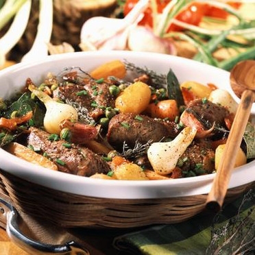 - Dorer dans une cocotte, sur feu moyen, les viandes.