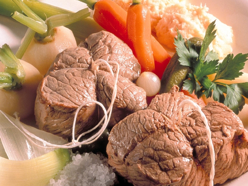 - Éplucher les poireaux et les lier en botte, peler les carottes et les navets. Mettre les légumes dans la marmite et laisser cuire 40 min.