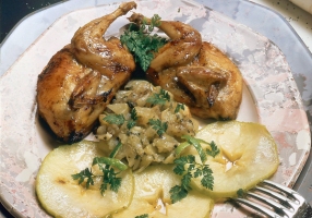 - Placer une rondelle sous chaque caille et servir très chaud.