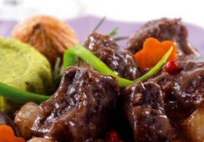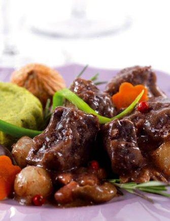 - La veille, faire mariner les cubes d'épaule de biche avec carottes, oignon, bouquet garni et genièvre.