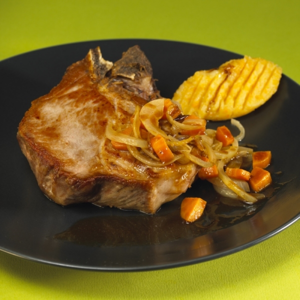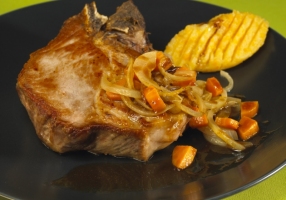 Servir l'échine et la purée sur assiette chaude accompagnées d'un cordon de sauce !