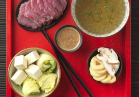 - Dégustez à l'aide de baguettes en plongeant quelques secondes l'ingrédient choisi dans le bouillon en ébullition.