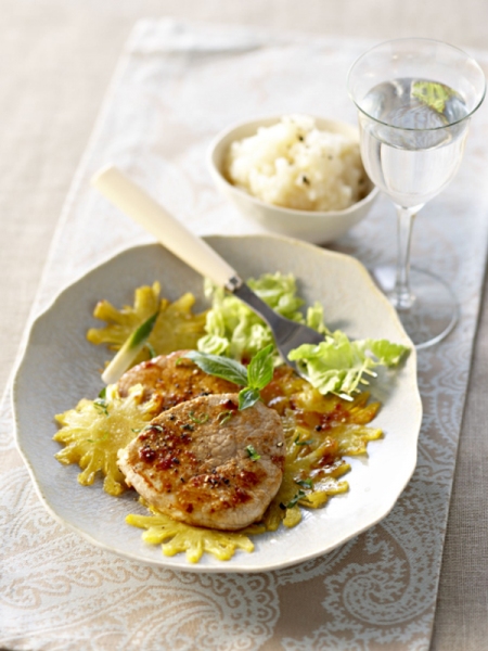 Servez les grenadins accompagnés de l'ananas caramélisé et de la purée de céleri.
