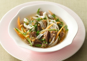 - Verser la viande et son jus de cuisson sur les nouilles.