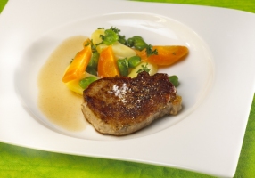 - Servir la viande accompagnée des légumes et du jus fumé.
