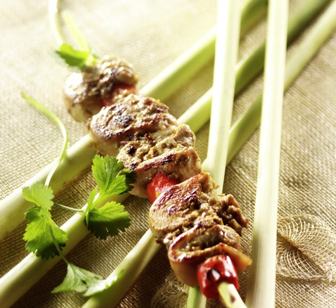 La cuisine d’été est peu exigeante, le vin doit rester estival : et pourtant si vous voulez épater vos convives, servez un vin blanc sec qui apporte le fruité à ce mets tout en montrant une certaine vivacité – Ainsi le « courant » passera. Les arômes fruités et floraux du vin enveloppent la viande, les saveurs d’agrumes dans lesquelles elle a mariné donnent encore plus de vivacité au vin qui se faufile à travers tous les acteurs. Même le poivron n’a pas droit à la parole. Allez chercher un « Chardonnay » bien mûr dans le Sud de la Bourgogne ou en Méditerranée – Des Sauvignons de millésimes chauds seront aussi les bienvenus. Si votre préférence va vers les rosés, qu’ils soient septentrionaux : ils rafraîchiront le palais.