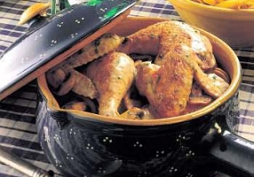- Lier-le à la crème, verser cette sauce sur les morceaux de coq.