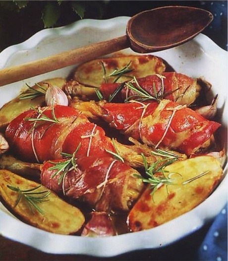 - Disposer autour les pommes de terre côté peau.