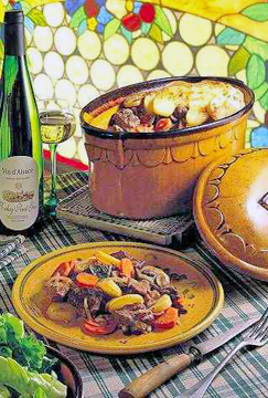 Bäeckeofe (assortiment de viandes variées et pommes de terre, mouillées au riesling et cuites au four)