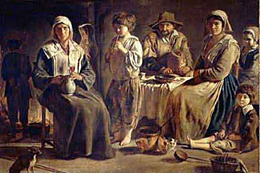 La viande est peu présente, excepté les jours de fête, ainsi que la morue et les harengs les jours maigres. Quant aux volailles, œufs, beurre et vin, ils étaient apportés au marché afin de gagner quelques piécettes nécessaires au paiement en argent de l'impôt royal.
