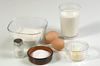 - On met dans le bol du mixer le lait, les œufs, le sucre, le sel, et la farine.